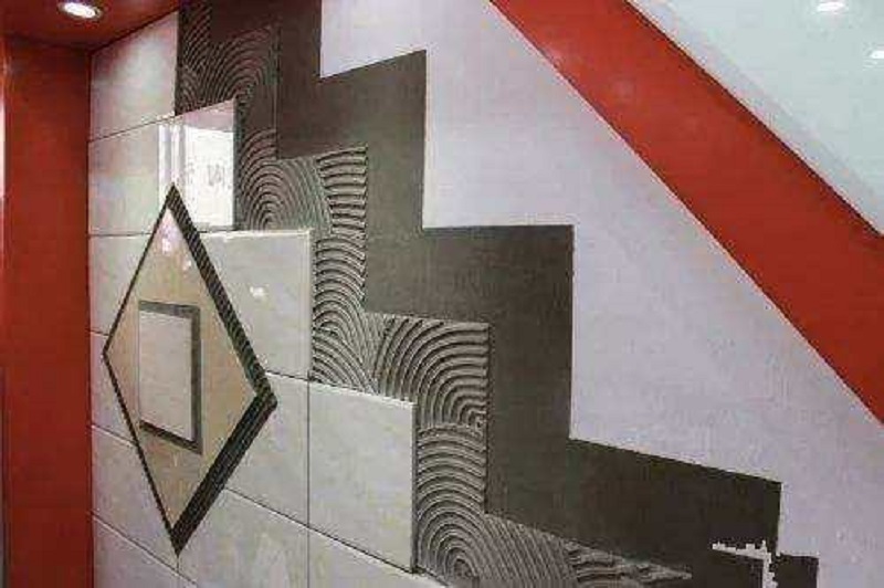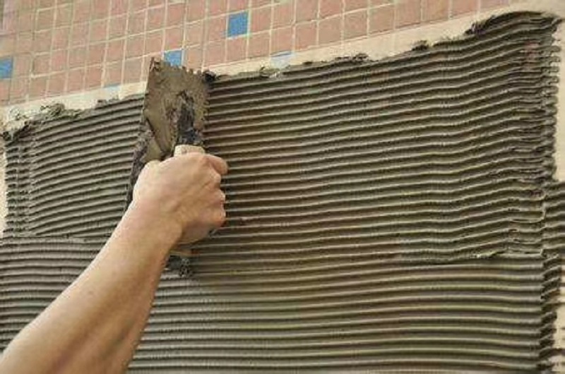 用水將干粉攪拌均勻成糊狀,水灰質(zhì)量比均為(0.25-0.3):1,攪拌均勻后漿料在3-4小時(shí)內(nèi)用完。用量與粘結(jié)材料種類及基層平整度有關(guān),在施工中一般采用單面粘帖法,即先在陶瓷磚背面先批一遍粘結(jié)砂漿,并用鋸齒(選用專用鋸齒鐵板)拉槽,將陶瓷磚直接粘結(jié)在墻面壓緊壓實(shí),粘結(jié)厚度3-4mm,參考用量約6-7kg/m2。如粘帖材料厚度大于10mm,應(yīng)采用雙面粘帖法,即先用鐵板在墻上批一遍粘結(jié)砂漿,并用鋸齒(選用專用鋸齒鐵板)拉槽,然后在粘結(jié)材料背面也批一遍粘結(jié)砂漿,再將粘帖材料貼至墻面上,壓緊壓實(shí),粘結(jié)厚度6-8mm,參考用量約12-14kg/m2。